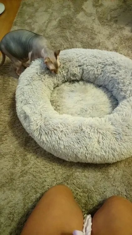 Pet Dog Cat Calming Bed Round Nest Warm Soft Plush Comfortable Sleeping Bed Nest